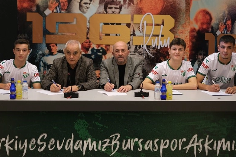 Bursaspor Kulübü’nden konuyla ilgili yapılan açıklamada, "Kulübümüz, altyapımızda yetişen Enes Çalışkan, Enes Solakoğulları, Taha Karataş ve Emir Aptioğlu ile profesyonel sözleşme imzaladı.Özlüce İbrahim Yazıcı Tesislerimizde gerçekleşen imza törenine Başkanımız Recep Günay, Gençlik Geliştirme Kurulu Başkanımız Mesut Uçaner, futbolcularımız ve aileleri katıldı" denildi. "Oyuncu satmayan tek başkanım" İmza töreninde konuşan Bursaspor Başkanı Recep Günay, "Genç kardeşlerimize hayırlı olsun. Şimdi daha çok çalışacaklar, hiçbir zaman 'Ben futbolcu oldum' deme şansları yok; hep kendilerini geliştirmeye çalışacaklar. Bakın, dünyanın en önemli futbolcuları hala ilk günkü hevesleriyle sahadalar. Hayırlı uğurlu olsun. Buradan şuna da değinmek istiyorum. Hakkımızda 'Oyuncu satacaklar, geleceğimizi satacaklar' diye spekülasyonlar çıkartıyorlar. Biz aksine gençlerimizi kulübümüze kazandırıyoruz. Ben tarihte oyuncu satmayan ilk başkanım. Bursaspor’un geleceği bu gençlerimiz. Bir dakika oynamadan giden yabancı oyuncular ve menajerli değil" diye konuştu. Gençlik Geliştirme Kurulu Başkanı Mesut Uçaner ise, "Böyle yetenekli oyuncuları profesyonel yaptığımız için çok mutluyum. Gelecekleri çok parlak, kulübümüze önemli hizmetler verecekler. Kendilerine başarılar diliyorum"dedi.