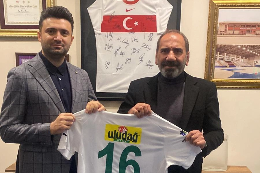 TFF 3. Lig’de mücadele eden Bursaspor’un başkanı Enes Çelik önemli bir ziyaret gerçekleştirdi. Yeniden Süper Lig yoluna giren ve her maçında 40 binin üzerinde taraftarının stadyumda ağırlayan yeşil-beyazlı kulüpte moraller de yerinde. Bu görüntünün oluşmasında başrol olan Bursaspor Başkanı Enes Çelik ise önemli ziyaretler gerçekleştirmeye devam ediyor. Başkan Çelik, TFF 1. Başkan Vekili Sayın Mecnun Otyakmaz ile 2. ve 3. Lig Kulüplerinden Sorumlu Yönetim Kurulu Üyesi Sayın Murat Şahin’i ziyaret etti. Bursaspor Kulübü’nden yapılan açıklamada şu ifadelere yer verildi: “Başkanımız Enes Çelik, Türkiye Futbol Federasyonu 1. Başkan Vekili Sayın Mecnun Otyakmaz ile 2. ve 3. Lig Kulüplerinden Sorumlu Yönetim Kurulu Üyesi Sayın Murat Şahin’i ziyaret etti.” Başkan Enes Çelik, görüşmeler sonrası Otyakmaz ve Şahin’e 16 numaralı Bursaspor forması hediye etti.