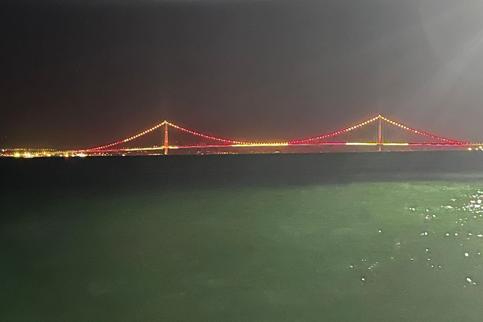 1915 Çanakkale Köprüsü, Cumhuriyet'in 100'üncü yılını simgeleyen ve 2023 metrelik orta açıklığıyla 'Dünyanın en uzun orta açıklıklı asma köprüsü' ünvanına sahip. Galatasaray'ın 2024-2025 sezonunda şampiyon olmasının ardından Türkiye'nin en önemli projeleri arasında yer alan 1915 Çanakkale Köprüsü sarı-kırmızı renklerle donatıldı.