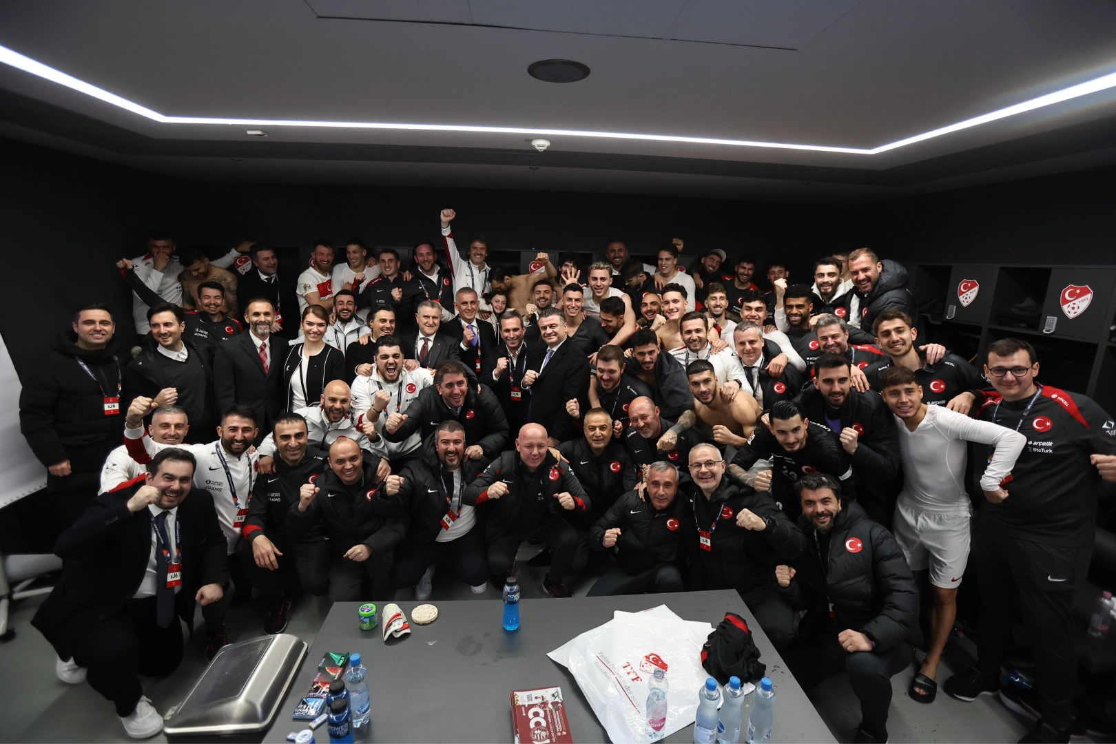 UEFA Uluslar Ligi play-off turu rövanş maçında Macaristan'ı eleyerek 3-0 mağlup eden A Milli Futbol Takımı tarihinde ilk kez A Ligi'ne yükselirken, Cumhurbaşkanı Recep Tayyip Erdoğan, ay-yıldızlı ekibi tebrik etti. Puskas Arena’da oynanan maçın ardından milli takımın soyunma odasında büyük sevinç yaşandı. Gençlik ve Spor Bakanı Osman Aşkın Bak, A Milli Takımı telefonla Cumhurbaşkanı Erdoğan ile görüştürdü. Teknik Direktör Vincenzo Montella ve Türkiye Futbol Federasyonu Başkanı İbrahim Hacıosmanoğlu ile konuşan Cumhurbaşkanı Erdoğan takıma tebriklerini iletti. Vincenzo Montella, Cumhurbaşkanı Erdoğan'a teşekkür edip, "Sayın Cumhurbaşkanım, çok güzel bir galibiyet aldık, umarım sizleri ve Türkiye’yi gururlandırmışızdır. Uzun zamandır, neredeyse üç senedir kendi evinde kaybetmeyen bir takımı yendik. Takımımız muazzam bir işe imza attı" diye konuştu. Cumhurbaşkanı Erdoğan ise "Tebrik ediyoruz, biz de sizinle gururlandık" dedi. Cumhurbaşkanı Erdoğan, İtalyanca 'Grazie' diyerek Teknik Direktör Montella’ya da teşekkür etti. Gençlik ve Spor Bakanı Osman Aşkın Bak da, Cumhurbaşkanı Erdoğan’a, "Tüm takımın selamları var, her iki maçta da çok iyi mücadele ettiler, tebrik ediyoruz. Destekleriniz için teşekkür ediyoruz" ifadelerini kullandı.