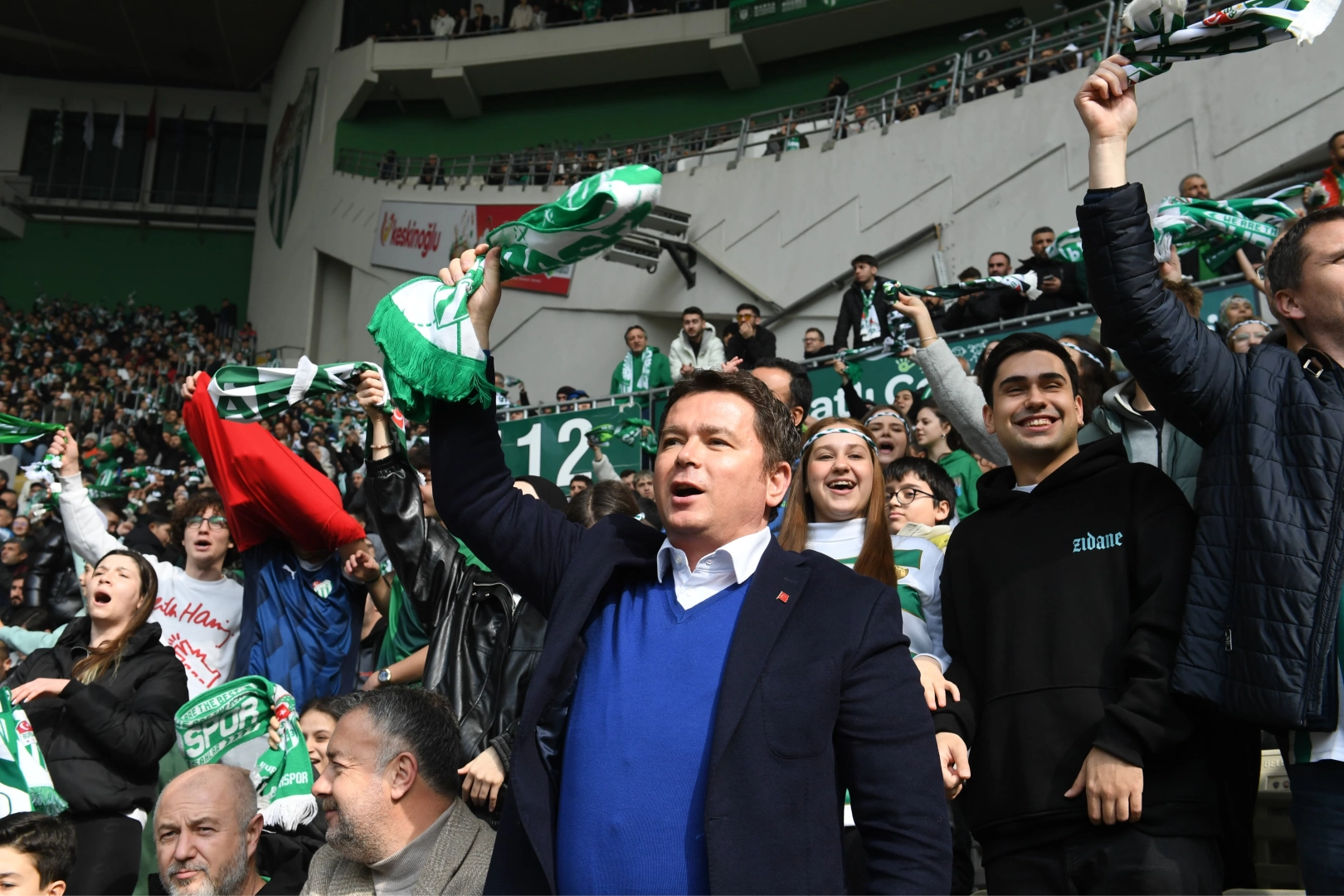 Osmangazi Belediye Başkanı Erkan Aydın, Bursaspor ile Anadolu Üniversitesi arasında oynanan karşılaşmayı, Çınar Lisesi öğrencileriyle birlikte tribünden izledi.