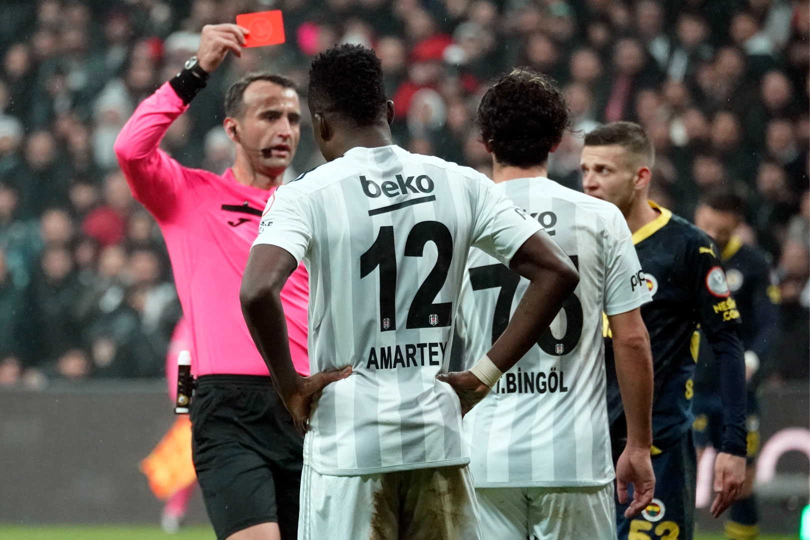 Trendyol Süper Lig'in 34. haftasında Fenerbahçe ile Beşiktaş, 27 Nisan Cumartesi günü kozlarını paylaşacak. Kadıköy'de oynanacak mücadele öncesi ezeli rekabette son dönemlerde sarı ve kırmızı kartların çokluğu dikkat çekiyor. İki takım arasında oynanan son 20 lig maçında hakemler, toplam 13 kırmızı ve 124 sarı kart gösterdi. Sarı-lacivertli futbolcular, söz konusu müsabakalarda 61 sarı, 4 kırmızı kartla cezalandırıldı. Siyah-beyazlı oyuncular ise 63 sarı, 9 kez de kırmızı kart gördü. Söz konusu süreçte Fenerbahçe 6 kez sahadan galibiyetle ayrılırken, Beşiktaş da 5 maçta gülen taraf oldu. 9 karşılaşma ise berabere sonuçlandı. 339 faul, 13 penaltı Nisan 2014'ten bu yana oynanan iki ekip arasındaki lig maçlarında 339 kez faul düdüğü çalındı. En fazla faul yapılan mücadele, 25 Şubat 2019'da Beşiktaş'ın ev sahipliğindeki 3-3'lük müsabaka oldu. İki takım lehine toplam 41 faul kararı verildi. 24 Eylül 2017'de Kadıköy'deki karşılaşmada ise 5 kırmızı, 9 sarı kartın yanı sıra 2 penaltı kararı çıktı. Son 20 maçta toplam 13 kez beyaz noktaya gidildi. Sarı-lacivertliler, 9 penaltının 7'sini gole çevirirken, 2 penaltıdan yararlanamadı. Siyah-beyazlılar ise 4 penaltının 3'ünde gol sevinci yaşadı.