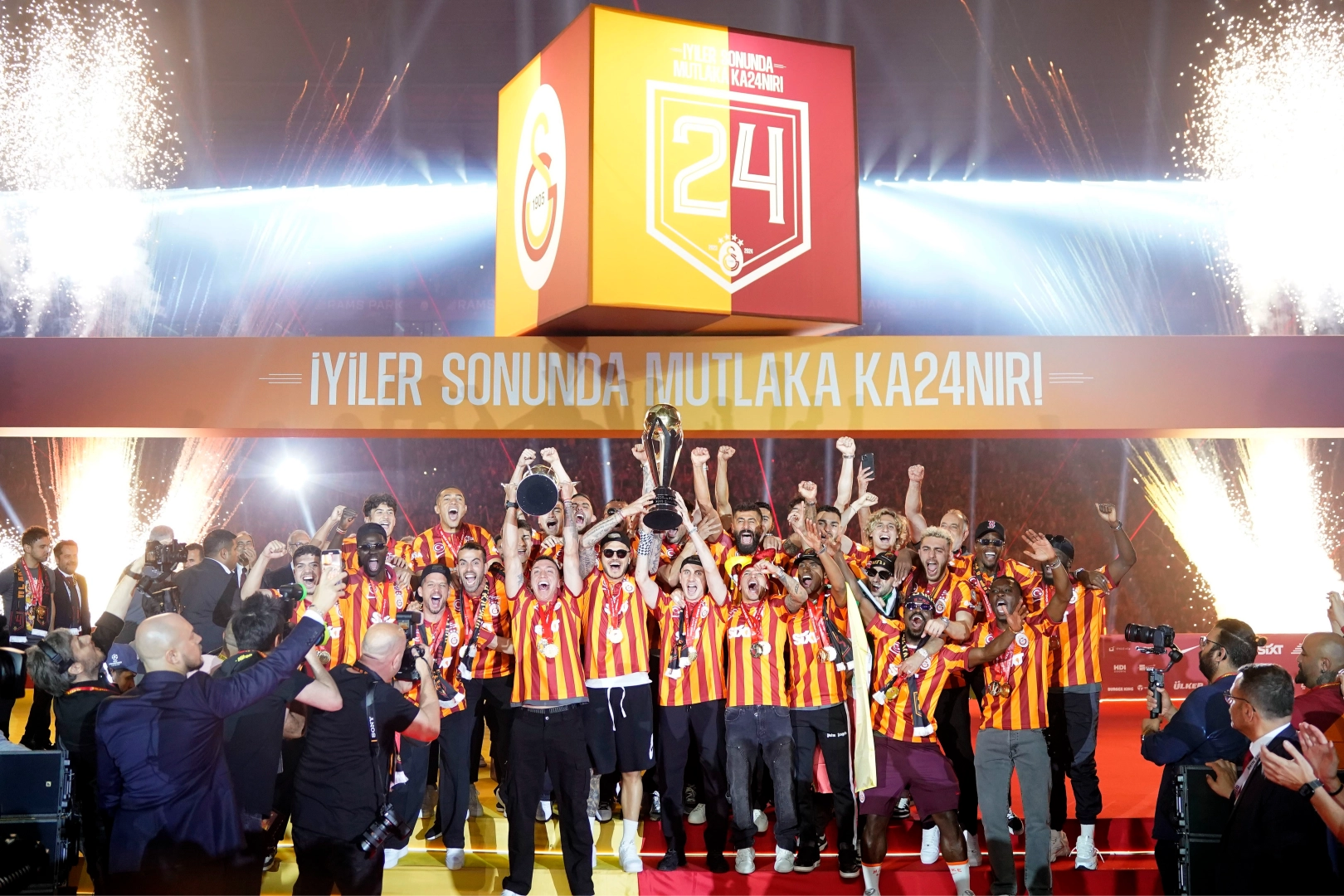Trendyol Süper Lig'de şampiyon olan ve TFF Süper Kupayı kazanan Galatasaray erkek futbol takımı ile Turkcell Kadın Futbol Süper Ligi'nde şampiyon olan kadın futbol takımı, RAMS Park'ta düzenlenen törenle kupalarını aldı.