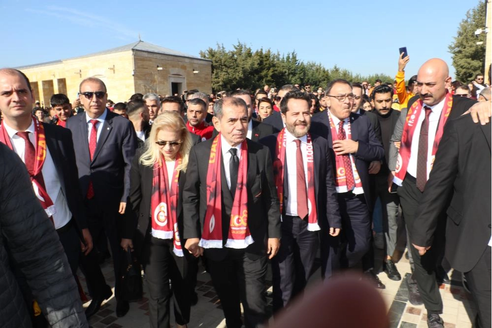 Aslanlı Yol’dan yürüyerek Atatürk’ün mozolesine gelen Sarı-kırmızılı heyet, Dursun Özbek'in mozoleye çelenk bırakmasının ardından saygı duruşunda bulundu. Hatıra fotoğrafı çekiminin ardından Misak-ı Milli Kulesi'ne geçen Dursun Özbek, Anıtkabir Özel Defteri'ni imzaladı. Başkan Özbek, deftere şu notları kaydetti: