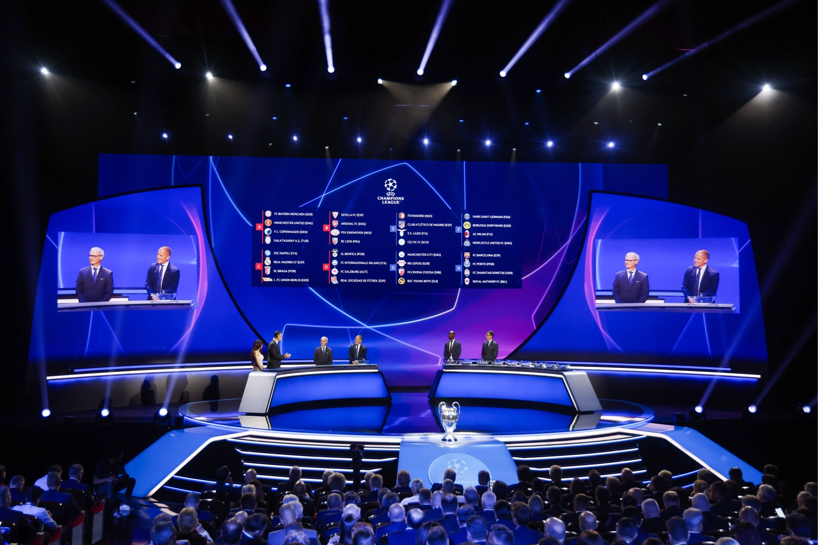 UEFA Şampiyonlar Ligi 2022-2023 sezonu grupları Fransa’nın Monaco’nun şehri Grimaldi Forum Ticaret Merkezi’nde gerçekleşen kura çekimiyle belli oldu. Barcelona’nın eski futbolcusu Eric Abidal ve İngiliz eski futbolcu Joe Cole’un çektiği kuralar sonunda 8 gruptaki takımlar netleşti. UEFA Şampiyonlar Ligi'nde oluşan gruplar şöyle: A Grubu