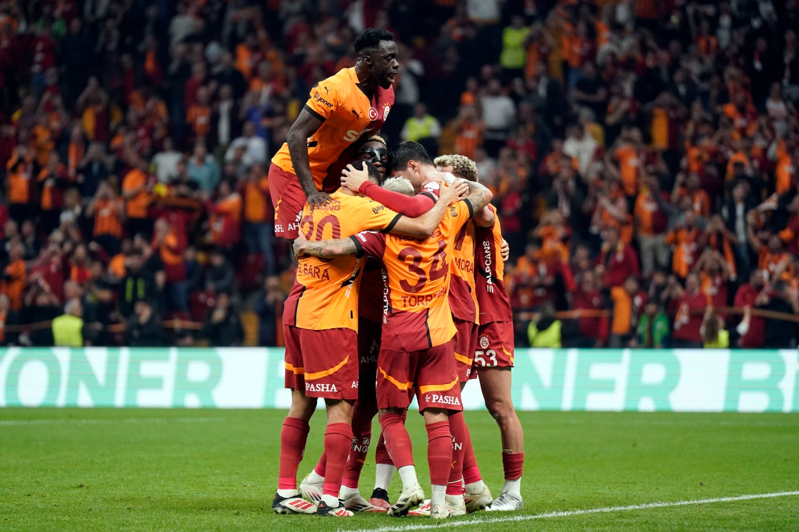 25. dakikada Yunus'un sol taraftan ortasında uzak kale direğindeki Barış Alper'in kafayla ortaya çevirdiği topta Osimhen'in vuruşunda meşin yuvarlak az farkla üstten auta gitti.