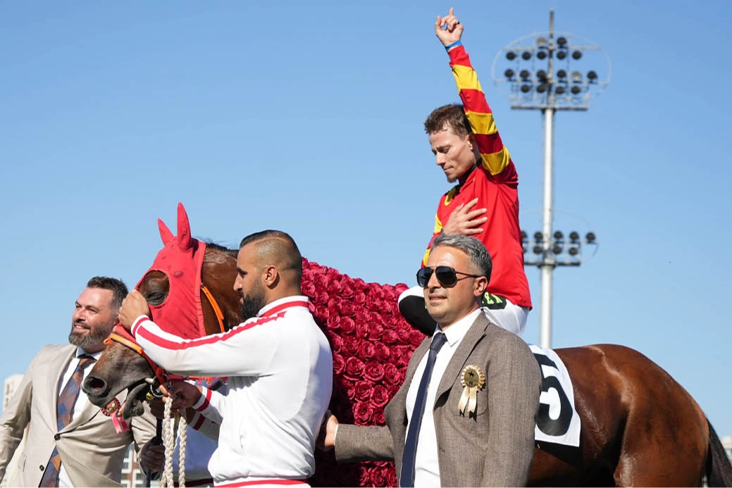 Bu yıl 98.’si düzenlenen ve Türk yarışçılık tarihinin derbisi olan Gazi Koşusu’nu Emrah Agun’un sahibi olduğu Dragon Flame, jokey Akın Sözen ile kazandı. Sözen sevincini Veliefendi Hipodromu’na gelen 50 bin yarışseverle birlikte paylaştı. Sözen, kupa töreni öncesi pistin kenarına gelerek objektiflere poz verdi. Bir elini kalbine götüren Sözen, diğer elinin işaret parmağıyla da gökleri göstermesi Real Madrid forması giyen milli futbolcu Arda Güler’in gol sevincini yaptığı anlaşıldı.