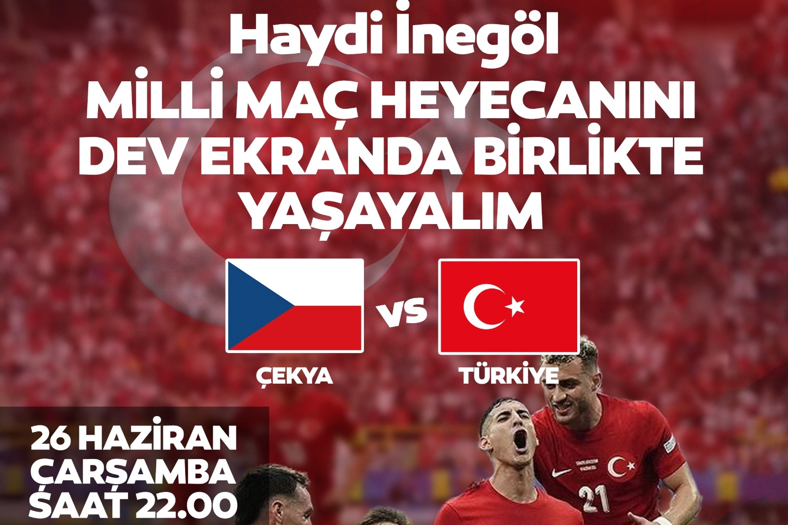 26 Haziran Çarşamba akşamı 22.00’da başlayacak maç için Yeni Kent Meydanı ve Yaşam Alanında dev ekran kurulacak. İnegöllüler burada ay yıldızlıların Avrupa Şampiyonası mücadelesini tüm şehir tek yürek izleyecek.