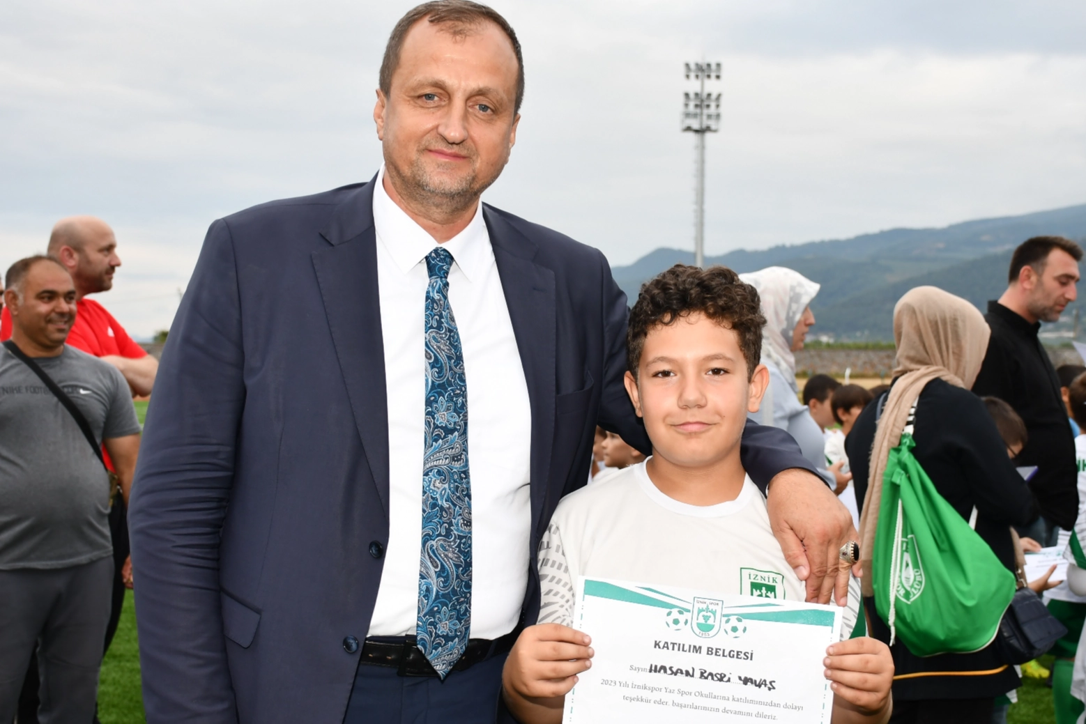 Toplamda 250 minik futbolcu, başarılı bir şekilde futbol kursunu tamamlayarak hak ettikleri sertifikalarını almanın mutluluğunu yaşadı. Sertifika dağıtım töreni, İznik Belediye Başkanı Kağan Mehmet Usta'nın katılımıyla gerçekleşti. İznikspor Kulübü Başkanı Mehmet Pösteki de etkinlikte Başkan Usta’ya eşlik etti.