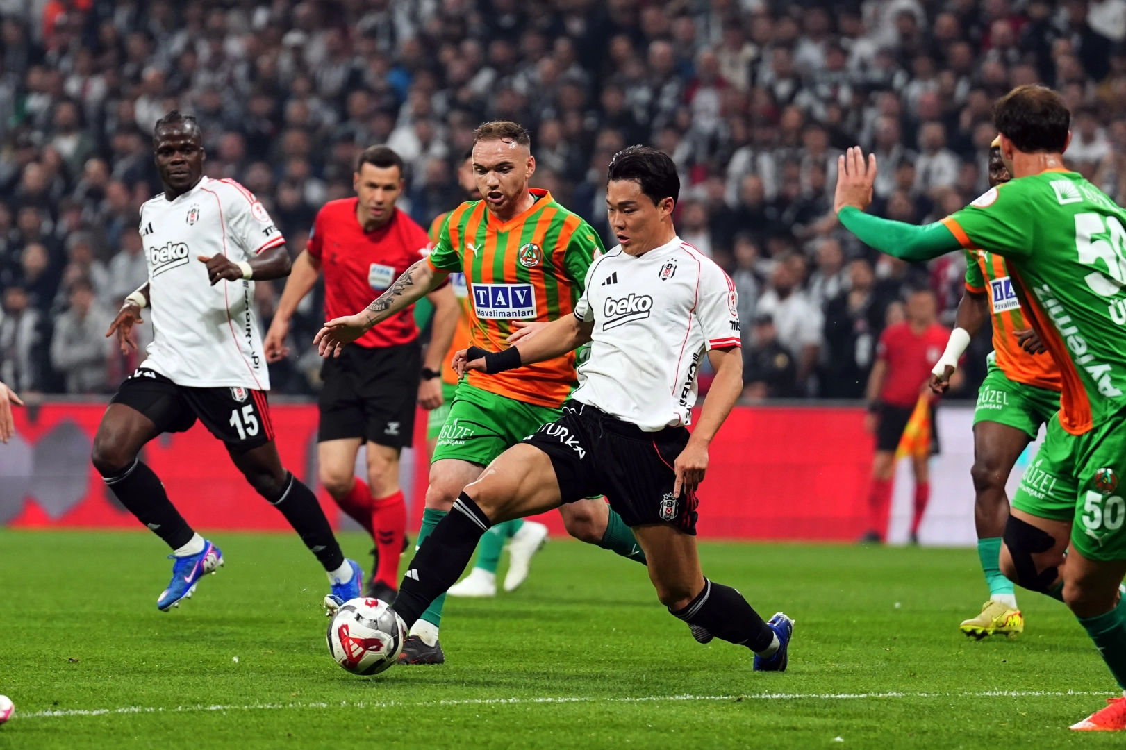 Ziraat Türkiye Kupası çeyrek finalinde Beşiktaş, konuk ettiği Corendon Alanyaspor’u 3-0’lık skorla mağlup ederek yarı finale yükseldi. Maçtan dakikalar (İkinci yarı) 60. dakikada Cerny'nin ceza sahası içinin sağından ortasında arka direkte El Bilal Toure’nin yükseldiği topu son anda savunma araya girerek kornere gönderdi. 68. dakikada ceza yayının içinden kullanılan serbest vuruşta Orkun topun başına geçti. Bu oyuncunun doğrudan kaleye yaptığı vuruşta top kaleci Ertuğrul’da kaldı. 83. dakikada kaleci Ertuğrul’un hatalı pası sonrası topu kapan Olaitan, pasını yanındaki Oh’a aktardı. Bu futbolcu müsait pozisyonda yaptığı vuruşta topu boş ağlara yolladı. 2-0 85. dakikada hızlı gelişen atak sonrası Rashica, sağ kanattan ortasını ceza sahasına yaptı. Kale önünde Orkun Kökçü, kafayla topu filelere gönderdi. 3-0 Stat: Tüpraş Hakemler: Cihan Aydın, Çağlar Uyarcan, Samet Çavuş Beşiktaş: Ersin Destanoğlu, Murillo, Agbadou, Emirhan Topçu, Rıdvan Yılmaz, Ndidi, Cerny (Rashica dk. 65), Olaitan (Asllani dk. 90+1), Orkun Kökçü (Jota dk. 89), El Bilal Toure (Mustafa Hekimoğlu dk. 89), Oh (Salih Uçan dk. 89) Yedekler: Vasquez, Cengiz Ünder, Uduokhai, Taylan Bulut, Yasin Özcan Teknik Direktör: Sergen Yalçın Corendon Alanyaspor: Ertuğrul Taşkıran, Fatih Aksoy (Meschack dk. 86), Lima, Ümit Akdağ, Hadergjonaj, Janvier, Maestro (İzzet Çelik dk. 74), Ruan, İbrahim Kaya (Enes Keskin dk. 66), Ui-Jo (Efecan Karaca dk. 74), Güven Yalçın (Mounie dk. 46) Yedekler: Victor, Hagi, Baran Moğultay, Viana, Makouta Teknik Direktör: Joao Pereira Goller: El Bilal Toure (dk. 17), Oh (dk. 83), Orkun Kökçü (dk. 85) (Beşiktaş) Sarı kart: Lima (Corendon Alanyaspor)