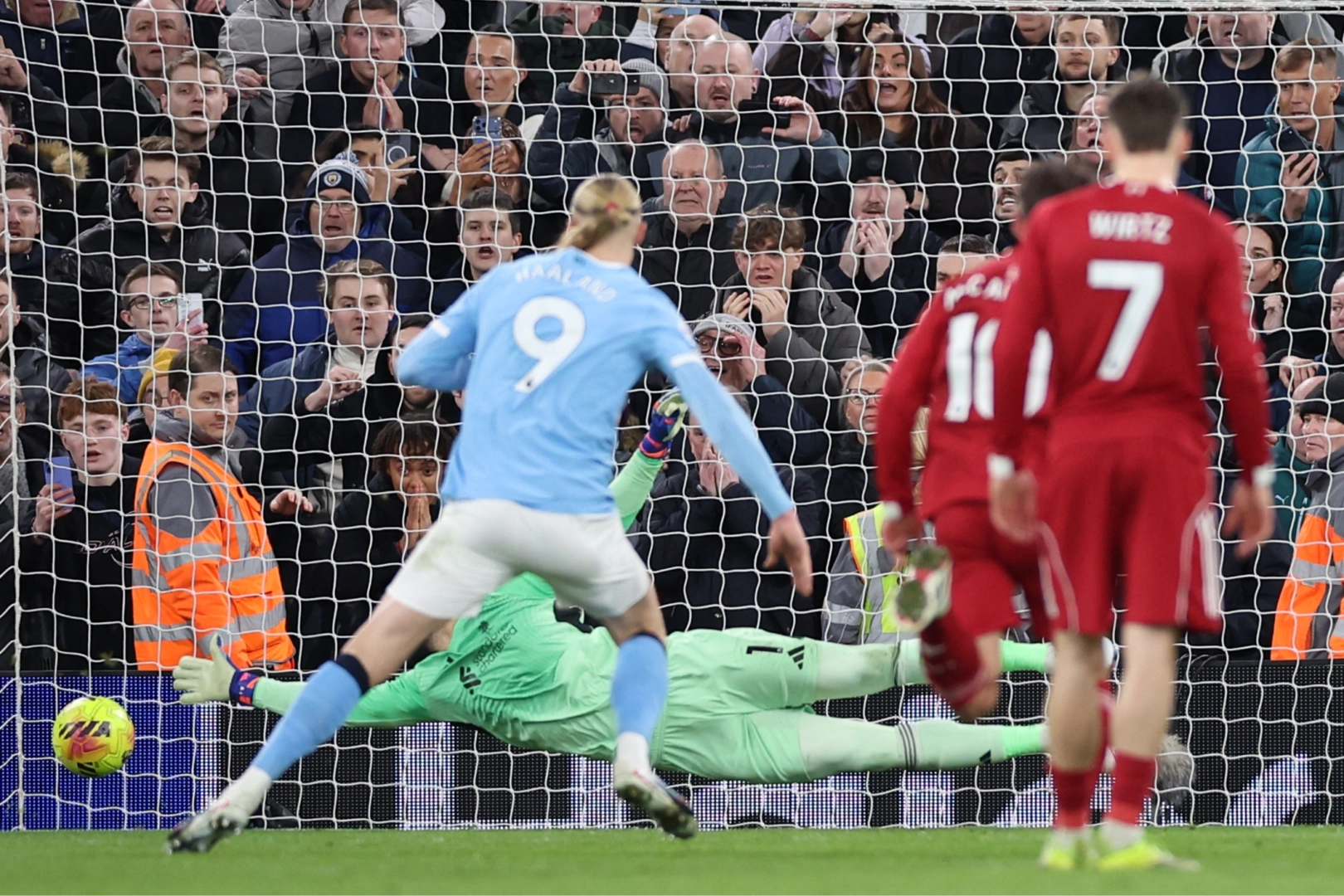 Manchester City, Premier Lig'in 25. haftasında deplasmanda karşılaştığı Liverpool'u son dakikalarda penaltıdan attığı golle 2-1 mağlup etti. Premier Lig'in 25. haftasında Liverpool ile Manchester City, Anfield'da karşı karşıya geldi. İlk yarısı 0-0 sona eren müsabakada 1-0 geriye düşmesine rağmen Manchester ekibi son dakikalarda attığı golle sahadan 2-1'lik skorla galip ayrıldı. City'nin gollerini 84. dakikada Bernardo Silva, 90+3. dakikada Erling Haaland kaydetti. Ev sahibi takımın tek golünü ise 74. dakikada Dominik Szoboszlai attı. Szoboszlai ayrıca 90+13. dakikada kırmızı kart gördü. Ligdeki 15. galibiyetini elde eden Manchester City, puanını 50'ye çıkardı ve lider Arsenal'ı takibini sürdürdü. Bu sezon ligde 8. mağlubiyetini alan Liverpool ise 39 puanla 6. sırada kaldı.
