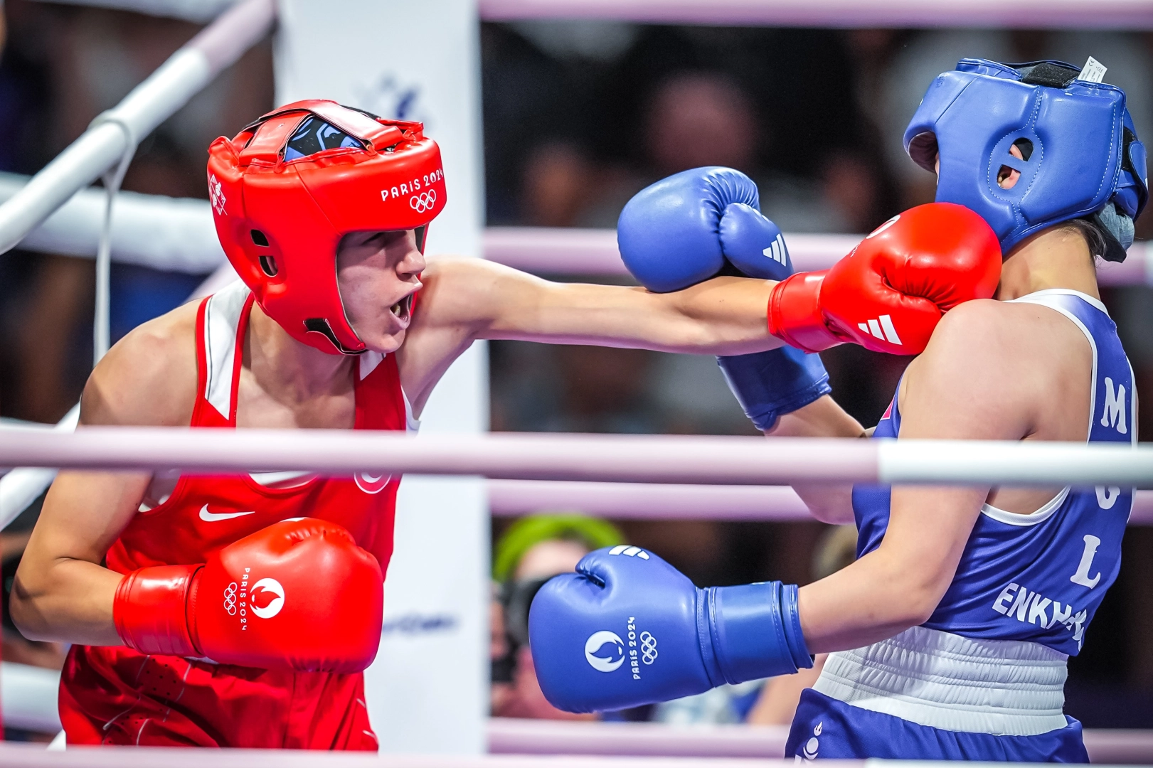 Paris 2024 Olimpiyat Oyunları'nda milli boksör Hatice Akbaş, kadınlar 54kg çeyrek finalinde Moğolistan'dan Enkhjargal Munguntsetseg'i 5-0 yenerek yarı finale yükseldi. Yarı finale kalarak madalyayı garantileyen Hatice Akbaş'ın, finale yükselme mücadelesi 4 Ağustos Pazar günü yapılacak.