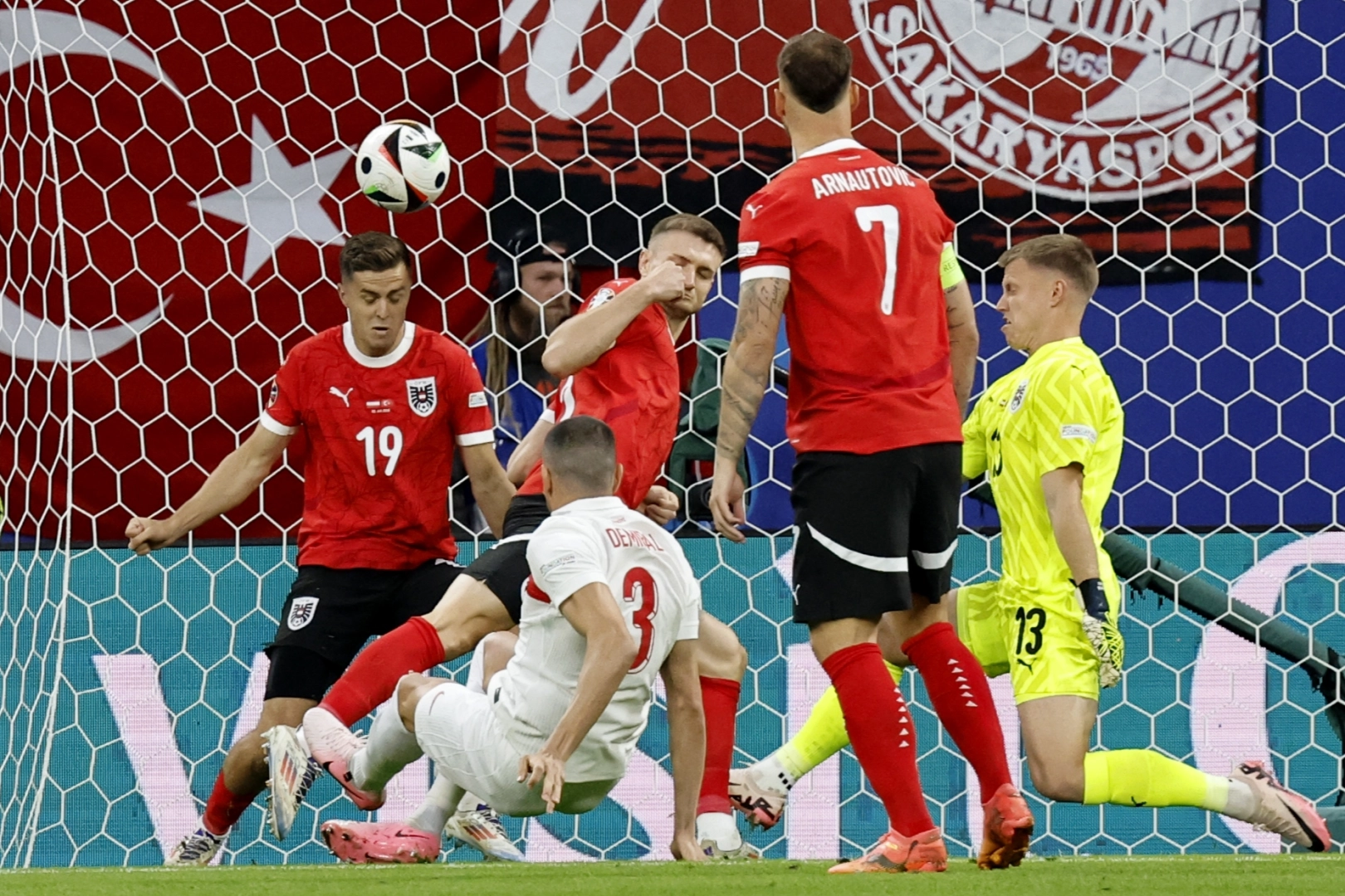 6. dakikada Avusturya’da Schimid’in soldan kullandığı köşe vuruşunda ön direğe yerden gelen ortayı Posch ayağıyla geriye aşırdı. Kale çizgisine paralel gelen meşin yuvarlağa arka direkte rakibinden önce müdahale eden Merih Demiral, topu kornere gönderdi.