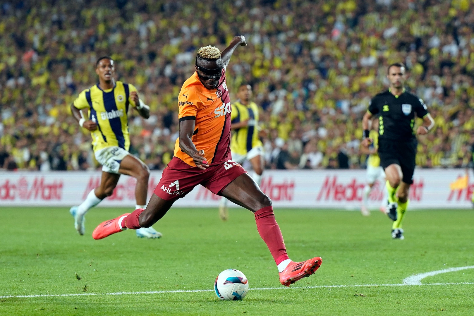 Galatasaray'ın Nijeryalı futbolcusu Victor Osimhen, Beşiktaş derbisinde 1 gol atarken, Fenerbahçe'ye karşı da 1 asist yaptı. Osimhen, sarı-kırmızılılar ile bu sezon ligde 14, UEFA Avrupa Ligi'nde de 6 olmak üzere toplam 20 gol attı.