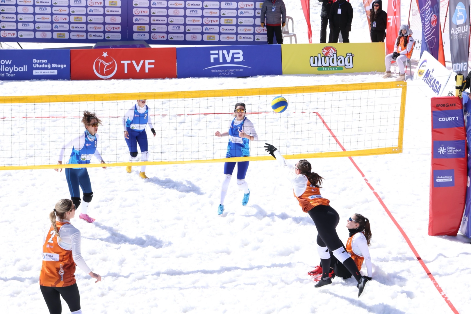 Osmangazi Belediyesi’nin Bursa’nın fethinin 700’üncü yılı etkinlikleri kapsamında düzenlediği 2026 FIVB Kar Voleybolu Dünya Turu Uludağ Etabı, 6 ülkeden 19 takım takım ve 100 sporcunun katılımıyla başladı.