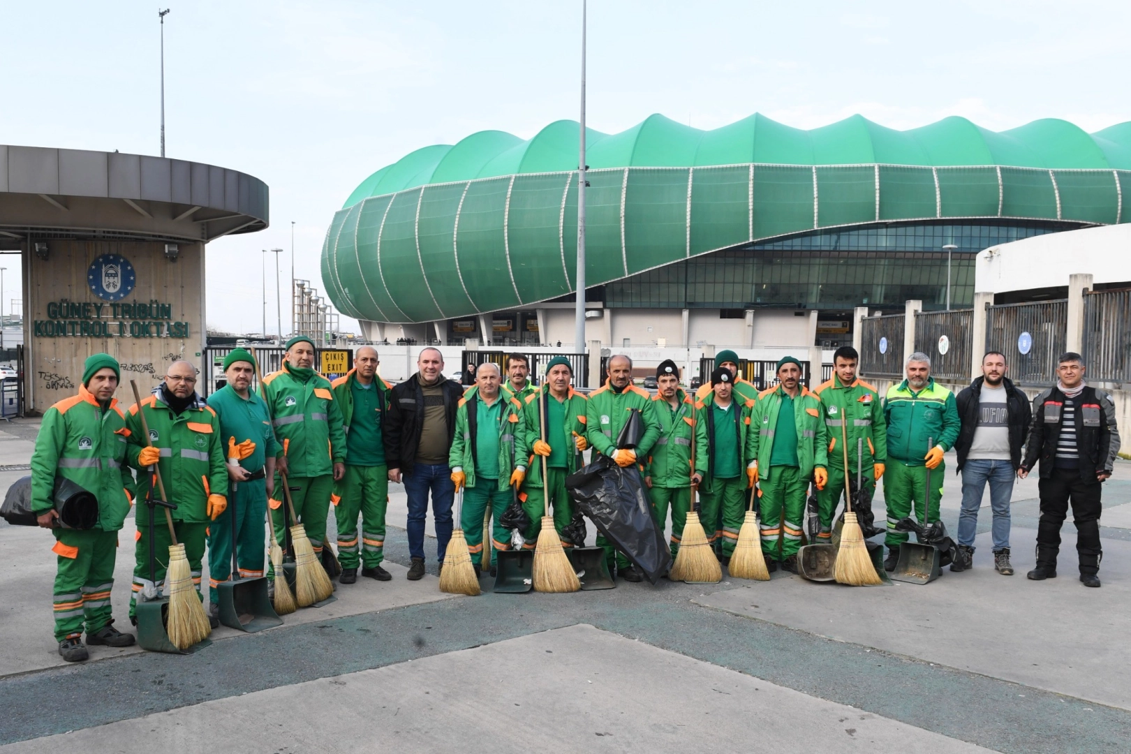 Osmangazi Belediyesi, bu sezon küllerinden doğarak TFF 3. Lig’de şampiyonluk mücadelesi veren Bursaspor’a her alanda destek olmaya devam ediyor. Yeni sezonu şampiyonlukla tamamlayarak tekrar üst liglere tırmanmayı hedefleyen Bursa’nın en önemli markası olan Bursaspor’un en kısa zamanda yeniden Süper Lig’de olması amacıyla üzerine düşeni yapan Osmangazi Belediyesi, Atatürk Spor Kompleksi Matlı Stadyumu’nun temizliği için de devreye girdi. Osmangazi Belediyesi Temizlik İşleri Müdürlüğü tarafından oluşturulan 20 kişilik ekip, çöp toplama aracı, süpürge aracı ve geri dönüşüm aracıyla birlikte özellikle maç günlerinde bölgede hummalı bir temizlik gerçekleştiriyor.