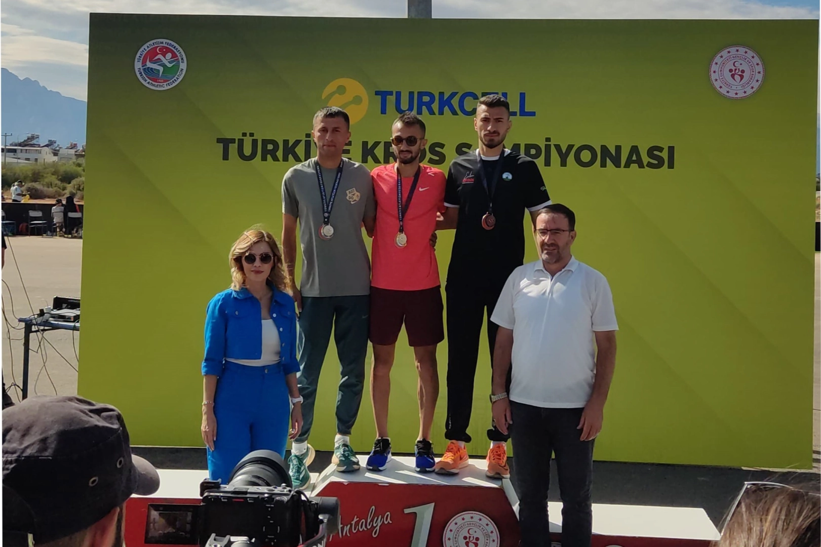 Antalya'da gerçekleştirilen Turkcell Türkiye Kros Şampiyonası, zorlu parkurda sporcuların nefes kesen bir mücadelesiyle tamamlandı. Milli takıma seçilme özelliği ile büyük öneme sahip şampiyonaya, U20, U23 ve Büyükler kategorilerinde toplam 278 sporcu katıldı. Büyük erkeklerde 9 kilometrelik parkuru 29.11’lik derece ile bitiren Osmangazi Belediyespor Kulübü sporcusu Mehmet Kalyoncu, üçüncülük kürsüsündeki yerini aldı. Elde ettiği bu başarı ile milli takıma girmeye hak kazanan Kalyoncu, 9 Kasım’da Romanya’da düzenlenecek olan Balkan Kros Şampiyonası’nda Türkiye’yi temsil edecek.