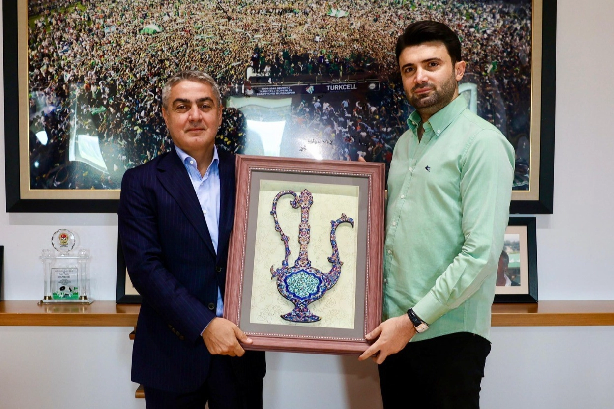 Bursaspor Kulübü’nün bugünkü ziyaretçisi, Bursa Gençlik ve Spor İl Müdürü Rahmi Aksoy oldu. Özlüce İbrahim Yazıcı Tesisleri’ne giden Aksoy, Bursaspor Başkanı Enes Çelik’le bir araya geldi. Gerçekleşen ziyarette Rahmi Aksoy, yeşil-beyazlı takıma yeni sezonda başarılar diledi ve yapılabilecek projeler hakkında bilgi alışverişinde bulundu.