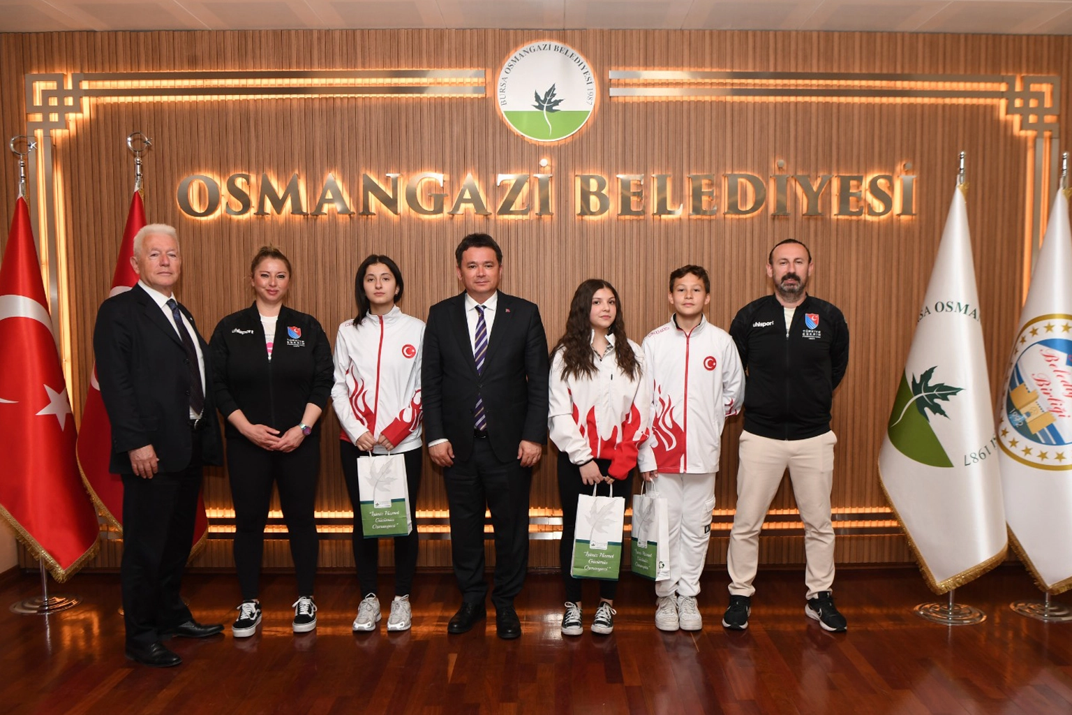 Katıldıkları turnuvalarda Bursa’yı başarıyla temsil eden ABFA Spor Kulübü eskrim sporcularını makamında kabul eden Başkan Aydın, genç sporcuları tebrik etti. U12 Erkekler Flöre Birincisi Vedat Tuna Karalar, U14 Bayanlar Flöre Birincisi Ada Küfeciler, Yıldız Kadınlar Flöre kategorisinde Türkiye Birincisi Ada Küfeciler, Genç Kadınlar Flöre kategorisinde Türkiye İkincisi Ayşe Aksoy, başarılarını Başkan Aydın ile paylaştı.