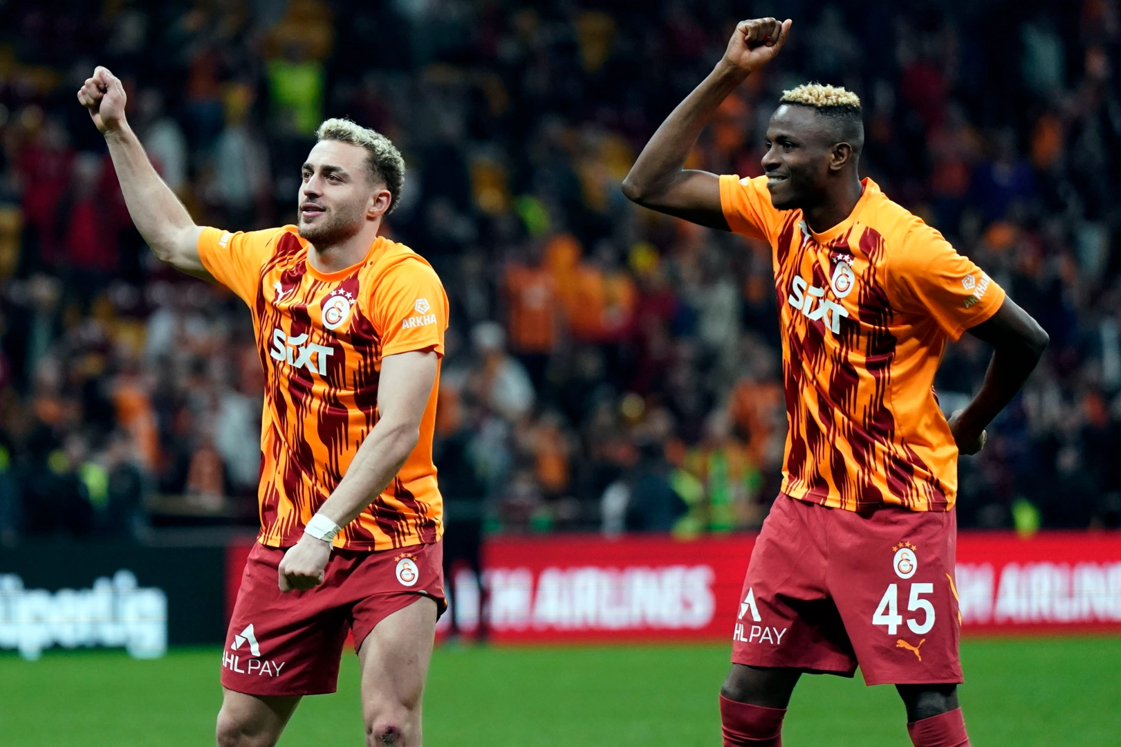 Galatasaray'da, Antalyaspor maçının ardından Victor Osimhen ile Barış Alper Yılmaz, sarı-kırmızılı taraftarlara 3'lü çektirdi. Trendyol Süper Lig’in 28. haftasında Galatasaray evinde karşılaştığı Antalyaspor’u 4-0 mağlup etti. Maçın ardından sarı-kırmızılı futbolcular büyük sevinç yaşadı ve galibiyeti taraftarlarla kutladı. Maçta hat-trick yapan Nijeryalı futbolcu Victor Osimhen ile 1 asist yapan Barış Alper Yılmaz, kale arkasındaki taraftarların isteğini kırmadı ve 3'lü çektirdi. Daha sonra futbolcular hep birlikte galibiyet sevincini yaşadı.
