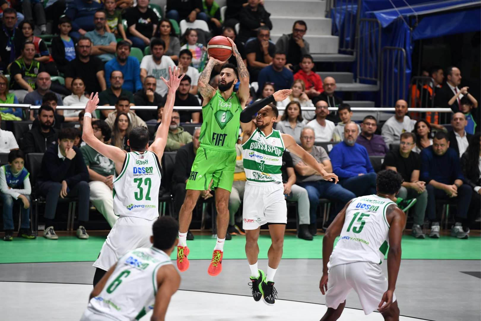 Türkiye Sigorta Basketbol Süper Ligi Asım Pars Sezonu 5. hafta mücadelesinde TOFAŞ, Bursaspor Basketbol’u ağırladı. Nilüfer TOFAŞ Spor Salonu’nda oynanan Bursa derbisine Alex Perez, Marcquise Reed, Tolga Geçim, Yiğitcan Saybir, Kris Bankston beşiyle başlayan Mavi Yeşilliler, ilk basketlerini Kris Bankston’ın serbest atışlarıyla buldu. Tolga Geçim’in üçlüğü sonrası Kris Bankston ve Marcquise Reed’in basketleriyle 6. dakikada molaya 11-6 önde giren ev sahibi takım, mola dönüşü Yiğitcan Saybir’in sayısı sonrası rakibe 7-0’lık seri verince skor 8. dakikada 13-13 eşitlendi. Kalan bölümde rakip sayılarına Alex Perez ve Marcquise Reed ile karşılık vermeye çalışan TOFAŞ, ilk çeyreği 18-22 geride kapattı.