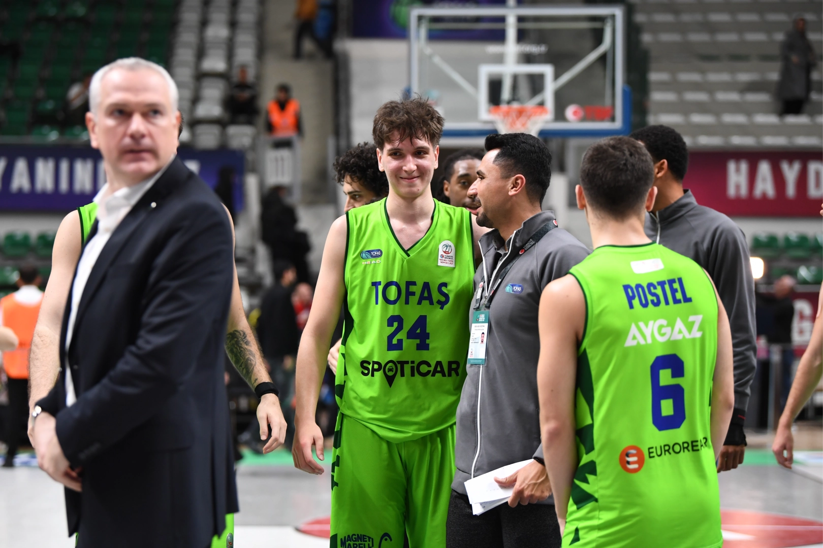 Dördüncü periyoda da Emirhan Serbest’in üçlüğüyle başlayan TOFAŞ Basketbol Takımı, Yiğitcan Saybir’in üçlüğüyle 31. dakikada durumu 64-41 yaptı. Rakip sayılarına Tolga Geçim, Özgür Cengiz ve Isaiah Whaley ile karşılık vermeye devam eden Mavi Yeşilli takım, Isaiah Whaley, Özgür Cengiz ve Hugo Besson ile bitime 3.41 kala 27 sayılık farkı yakaladı: 78-51. Hugo Besson’ın basketilye parkeden 80-62’lik skorla galip ayrılan TOFAŞ, bu sonuçla ligde iç sahadaki yenilmezliğini sürdürerek seriyi 6 maça çıkardı.