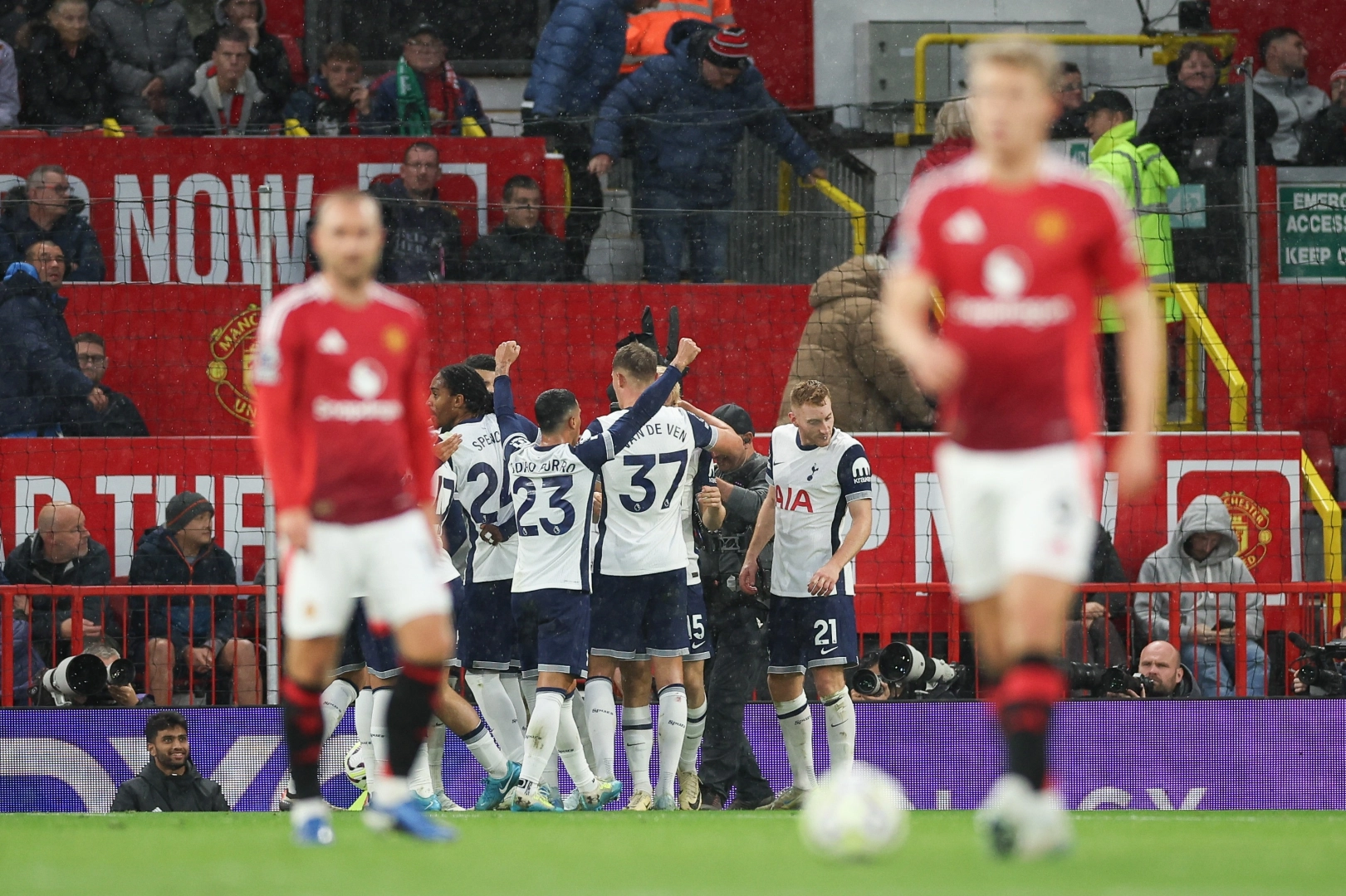 Premier Lig'in 6. haftasında Manchester United ile Tottenham, Old Trafford'da karşı karşıya geldi. Mücadeleye hızlı başlayan konuk ekip 3. dakikada Brennan Johnson'un attığı golle 1-0 öne geçti. Ev sahibi takım 42. dakikada Bruno Fernandes'in gördüğü kırmızı kartla 10 kişi kalırken, ilk yarı da Tottenham'ın 1-0'lık üstünlüğü ile tamamlandı. İkinci yarıda 47. dakikada Dejan Kulusevski ve 77. dakikada da Dominic Solanke'nin golleriyle skor 3-0 oldu. Maçın geri kalanında başka gol olmayınca Tottenham sahadan 3-0'lık skorla galip ayrıldı. Ligdeki 3. galibiyetini alan Tottenham puanını 10'a çıkarırken, bu sezonki 3. yenilgisini alan Manchester United ise 7 puanda kaldı. Ange Postecoglou'nun öğrencileri gelecek hafta Brighton & Hove Albion'a konuk olacak. Erik ten Hag'in ekibi de Aston Villa ile deplasmanda oynayacak. Öte yandan UEFA Avrupa Ligi'nde Manchester United, 24 Ekim Perşembe günü Fenerbahçe'ye konuk olacak. Tottenham ise 7 Kasım Perşembe günü Galatasaray ile deplasmanda karşılaşacak.
