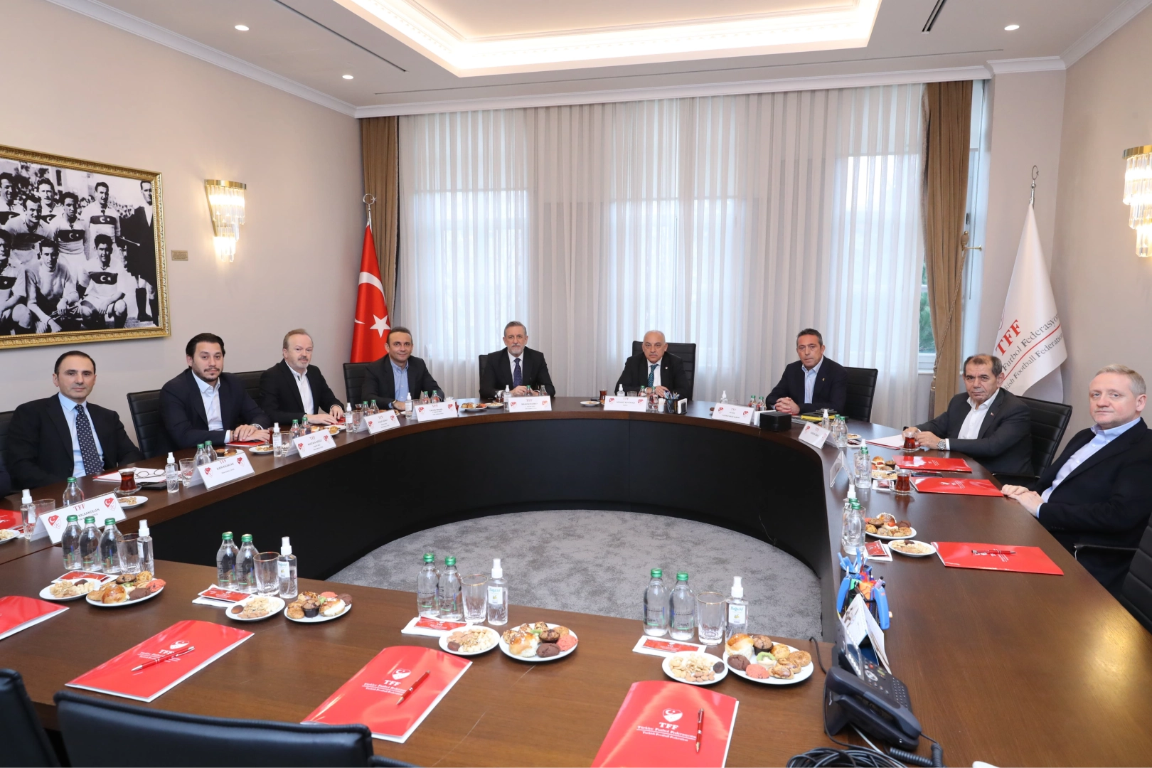 Yayın İhale Komisyonu toplantısında Kulüpler Birliği Vakfı Başkanı ve Fenerbahçe Spor Kulübü Başkanı Ali Koç, Galatasaray Spor Kulübü Başkanı ve Kulüpler Birliği Vakfı Başkan Yardımcısı Dursun Özbek ile RAMS Başakşehir Futbol Kulübü Başkanı ve Kulüpler Birliği Vakfı Başkan Yardımcısı Göksel Gümüşdağ'ın yanı sıra TFF Başkanı Mehmet Büyükekşi, 1. Başkan Vekili, İcra Kurulu Üyesi, Stratejik Planlama, Yeni Proje Geliştirmeden Sorumlu Yönetim Kurulu Üyesi İbrahim Burkay, 2. Başkan Vekili, İcra Kurulu Üyesi, İdari İşler ve 1. Lig'den Sorumlu Yönetim Kurulu Üyesi Yalçın Orhan, Başkan Vekili, İcra Kurulu Üyesi, Kulüp Lisans İşleri ve Engelli Federasyonlarından Sorumlu Yönetim Kurulu Üyesi Yusuf Günay, Başkan Vekili, İcra Kurulu Üyesi, FIFA, UEFA İlişkileri ve Dış İlişkilerden Sorumlu Yönetim Kurulu Üyesi Mustafa Eröğüt, Başkan Vekili, İcra Kurulu Üyesi, E-Bilet, Sponsorluklar ve Pazarlamadan Sorumlu Yönetim Kurulu Üyesi Alkın Kalkavan ile Mali İşlerden ve Yeni Teknolojilerden Sorumlu Yönetim Kurulu Üyesi Erman Kalkandelen yer aldı. TFF'den yapılan yazılı açıklamada, "Görüşmede 2024-2025, 2025-2026 ve 2026-2027 futbol sezonlarına ilişkin Süper Lig ve TFF 1. Lig müsabakaları yayın haklarının devri için verilen teklifler komisyon tarafından incelendi. Bu kapsamda Yayın İhale Komisyonu, yayın ihalesine teklif veren Saran Medya temsilcilerini komisyon toplantısına davet ederek ilk görüşmesini gerçekleştirdi. Türkiye Futbol Federasyonu tarafından 2024-2025, 2025-2026 ve 2026-2027 futbol sezonlarına ilişkin Süper Lig ve TFF 1. Lig müsabakaları yayın haklarının devri hakkında düzenlenen ihale, İhale Genel Şartnamesi'ne ve her bir pakete ilişkin Özel Şartnameler'e uygun olarak kapalı teklif ve pazarlık usulüyle yapılıyor. Süper Lig ve TFF 1. Lig müsabakalarının yayın haklarının devrine ilişkin ihale 29.02.2024 tarihe kadar tamamlanması planlanıyor" denildi.