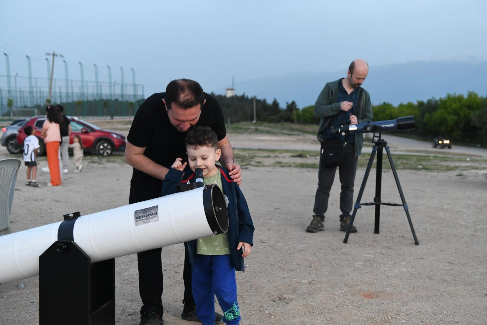 Her ay farklı temalarda buluşmalar gerçekleştirdiklerini ifade eden Bilim ve Amatör Astronomi Kulübü Başkanı Cem Özkan ‘Osmangazi Belediyesi ile kulübümüz son bir yıldır her ay belli bilimsel temalarla, Osmangazi kentinin çeşitli bölgelerinde halk bilim buluşmaları ve köylerde köy bilim buluşmaları etkinlikleri gerçekleştiriyor. Burada amacımız insanlara köydeki insanları popüler bilim faaliyetleriyle bilime yaklaştırmak. Kentteki insanları kırsal alana getirerek ortak bir etkinlikte buluşturmayı hedefliyoruz. Her ay farklı temalarda buluşmalar gerçekleştiriyoruz. Bu ay ki etkinliğimizin temasını, ‘Dünya Işık Günü’ olarak belirledik. Etkinlikte ışığın insan hayatındaki önemini vurguladık, bilim ve teknolojide geliştiği yeri anlattık. Burada ışığı her boyutuyla köy halkına anlattık. Işık hayatımızı çok zenginleştiriyor ama ışığın hoyratça ve bilinçsizce kullanımı şehir hayatındaki insanları bir anlamdan da ışık kirliliğe maruz bıraktığını göstererek anlattık. Etkinlikte ışık kirliliği ölçümleri yaparak bunu buradaki vatandaşlara gösterdik. Burada teleskoplarımızı kurup gezegen gözlemleri yaptık’ dedi.