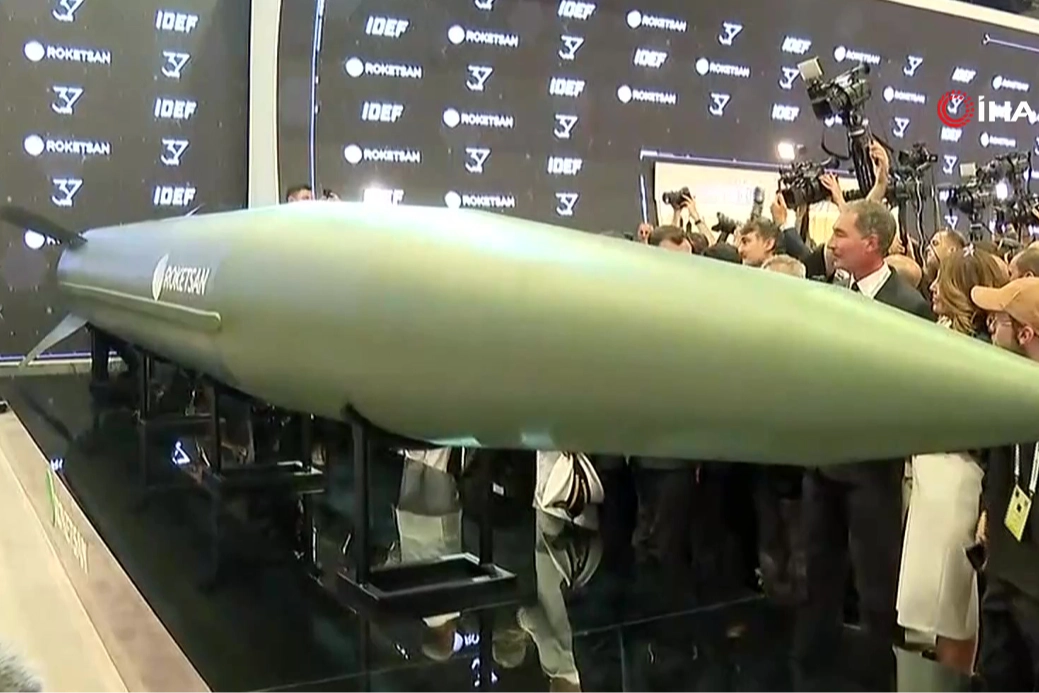TAYFUN BLOK-4 Hipersonik Füze: Türkiye’nin en uzun menzilli ve milli imkanlarla üretilmiş balistik füzesi ünvanını taşıyan TAYFUN Füzesi’nin BLOK-4 Hipersonik versiyonu da IDEF’25’te ilk kez sergilendi. TAYFUN BLOK-4 ile uzun menzillere ulaşılarak Türk savunma sanayisinde bir rekora daha imza atılıyor. 7 tonun üzerinde bir ağırlığa sahip olacak TAYFUN’un bu yeni versiyonu, çok maksatlı harp başlığı ile hava savunma sistemleri, komuta kontrol merkezleri, askeri hangarlar, kritik askeri tesisler gibi birçok stratejik hedefi kilometrelerce öteden yok edebilecek.
