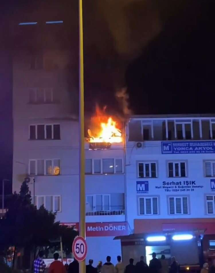 Bursa’da bir iş merkezinin yanında bulunan 5 katlı binanın 3. katı alevlere teslim oldu. İtfaiye ekiplerince yangın kontrol altına alınırken, mahalleli korku dolu anlar yaşadı.