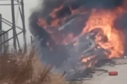 Arı yüzünden devrilen kamyon alev alev böyle yandı