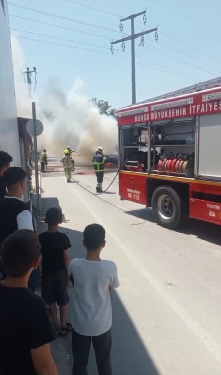 Bursa'da 40 dereceyi bulan hava sıcaklığında bir otomobil alev alev yandı.