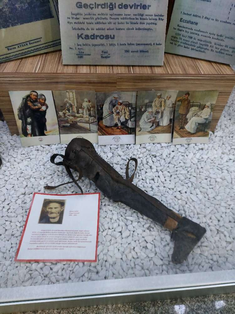 Balkan Savaşı sırasında bir bacağını kaybeden Gazi Ahmet Kara için yapılan tahtadan protez bacak, 110 yıl sonra İnegöl Devlet Hastanesi’nde sergilenmeye başladı.
