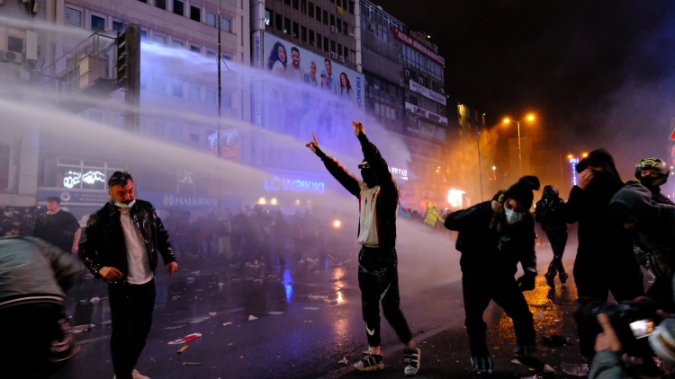 Yapılan uyarılara rağmen plastik şişe atan ve trafik levhalarını sallayan kalabalığa tazyikli su ve biber gazı ile müdahale edildi. Protestoya yüzleri kapalı bir şekilde katılan eylemciler ise polis ekipleri tarafından müdahale esnasında gözaltına alındı.