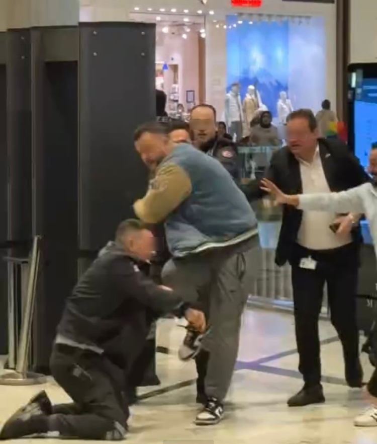 Bursa'nın Nilüfer ilçesinde bulunan Marka Alışveriş Merkezi'ne kız arkadaşıyla gezmeye gelen kişi, kız arkadaşını köpekle içeri almayan güvenlik görevlisiyle kavga etti.