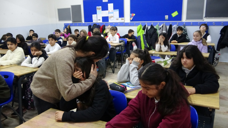 Törenin ardından, Mina'nın sınıfında oturduğu sıraya fotoğrafı, anı defteri ve gül bırakılırken, sınıf arkadaşları gözyaşlarına hakim olamadı.