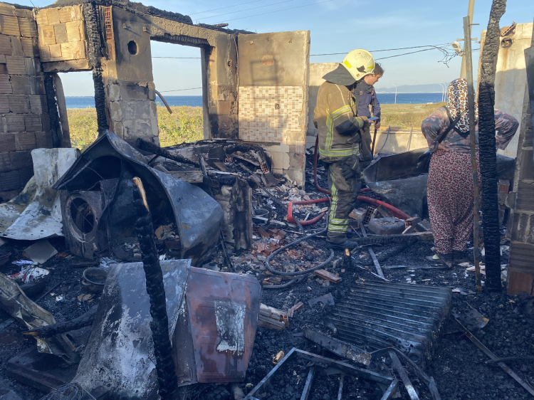 Bursa'nın Mudanya ilçesinde çıkan yangında bir ev küle dönerken, yanındaki bina da alevler ve söndürme esnasındaki su nedeniyle hasar gördü.