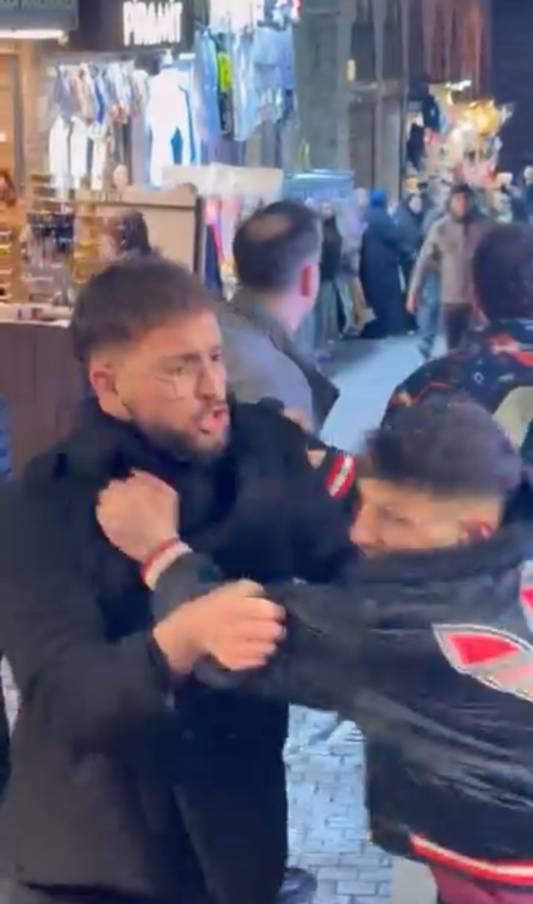 Bursa’da tarihi çarşıda iki grup arasında çıkan kavga, adeta meydan muharebesine döndü. Yumrukların havada uçuştuğu anlar saniye saniye kameraya yansırken, panik yaşayan vatandaşlar olay yerinden uzaklaşmaya çalıştı.