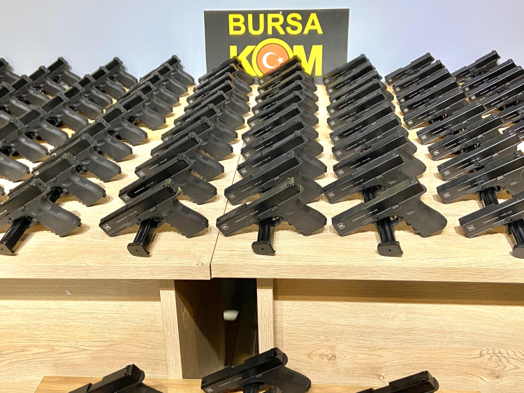 Bursa İl Emniyet Müdürlüğü Kaçakçılık ve Organize Suçlarla Mücadele Şube Müdürlüğü Organize Suçlar Büro Amirliği ekipleri, 'Ruhsatsız Silah İmal ve Ticareti' suçuna yönelik operasyon düzenledi. İl dışından Bursa'ya çok fazla sayıda ruhsatsız tabanca sevkiyatı yapılacağı bilgisini alan ekipler, teknik ve fiziki takibe başladı. D.Ö. isimli şüpheli şahsın Bursa dışından kiraladığı araç ile suçu kamufle etmek ve dikkat çekmemek amacıyla eşi ve çocuklarını yanına alarak ve alternatif güzergahlar kullanarak Bursa'ya geldiği belirlendi. Polis ekipleri Bursa'ya gelen aracı İnegöl girişinde durdurdu. Yapılan aramada aracın bagaj kısmında satışa hazır ayrı ayrı paketlenmiş toplamda 150 adet tabanca yakalandı. Dana önce de benzer suçlardan çok sayıda suç kaydı bulunan şüpheli D.Ö., çıkarıldığı mahkemece tutuklandı.