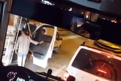 Bursa'da iki sürücü gece saatlerinde trafiği seyrek olduğu ana yolda 'yol verme' meselesi yüzünden kavga etti.