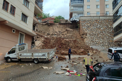 Bursa’da istinat duvarı apartmanın üzerine çöktü, 2 kişi yaralandı