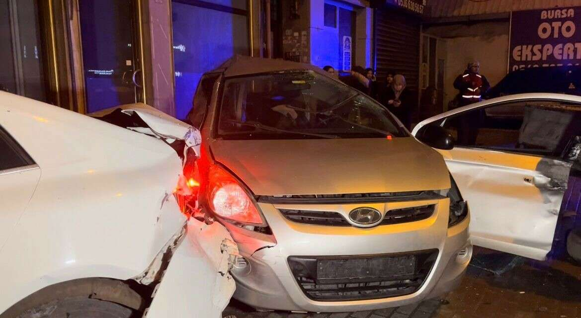 Bursa'da kontrolden çıkan otomobil, park halindeki araçlara çarptı: 1 ağır yaralı