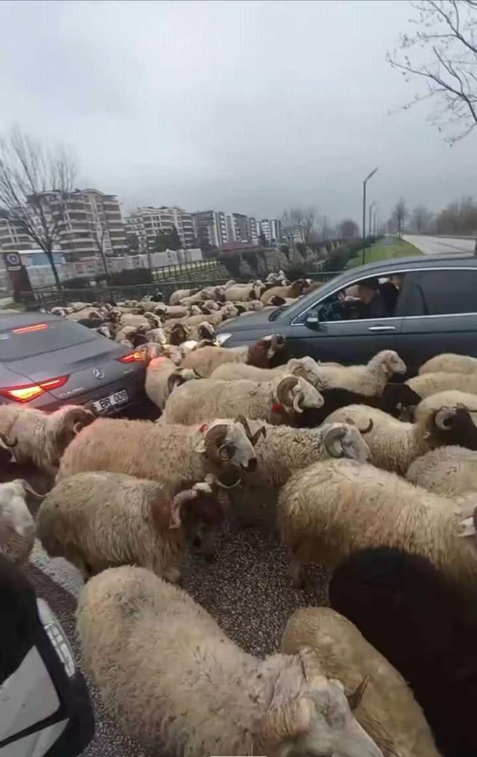 Edinilen bilgiye göre, yüzlerce koyunun bulunduğu sürü, çobanın kontrolünden çıkınca bir anda çevre yoluna çıktı. Sürücülerin dikkati sayesinde olması muhtemelen bir kaza yaşanmazken trafikte uzun kuyruklar oluştu. Vatandaşlar yaşanan bu duruma isyan ederken bir süre boyunca yol üzerinde kalan koyunların gitmesiyle birlikte trafik yeniden normal akışına döndü.