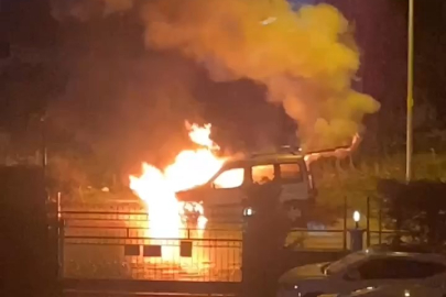 Hafif ticari aracın alev alev yanması kameraya yansıdı.