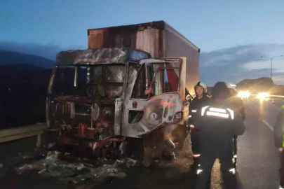 Gebze-Orhangazi-İzmir Otoyolu’nda tavuk yemi yüklü bir kamyon motor bölümünden alev aldı. Sürücüsünün son anda emniyet şeridine çekip indiği kamyon alev topuna dönerken, itfaiye ekiplerinin müdahalesi ile yangın söndürüldü. Araç kullanılamaz hale geldi.