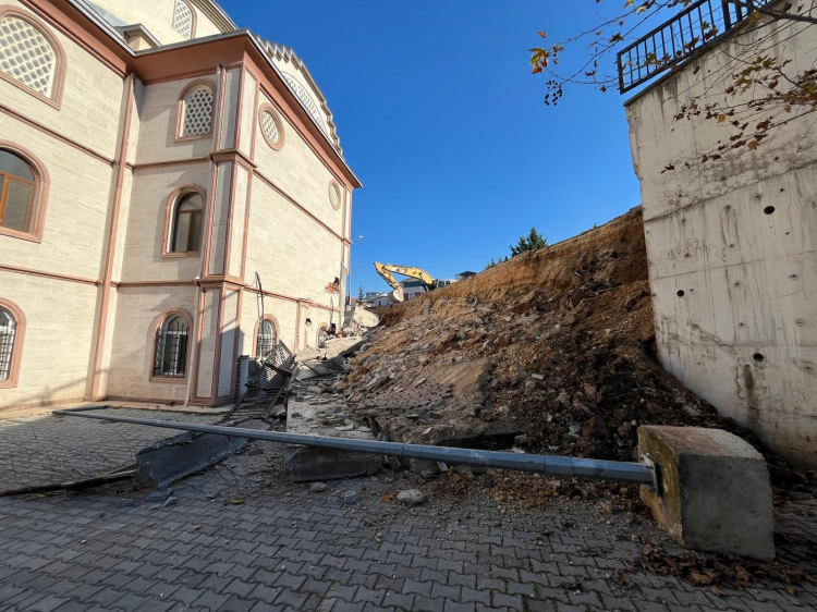 Sabah saatlerinde yürüyüş yapan kadının bilgi vermesinin üzerinden 9 saat sonra istinat duvarı ve yürüyüş yolu caminin arka bahçesine ve Kur'an kursu üzerine büyük bir gürültü ile yıkıldı. Tedbirlerin alındığı şeridin çekildiği alanda yaşanan yıkımda can kaybı yaşanmadı.
