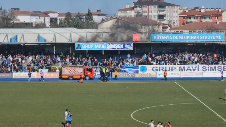 Belediye Kütahyaspor - Bursaspor mücadelesinin 87. dakikasında Dumlupınar Stadyumu'nun orta tribünlerinden dumanlar yükselmeye başladı. Karşılaşmanın hakemi oyunu durdururken, itfaiye ekipleri müdahale için dumanların yükseldiği yere gitti. Neden çıktığı belli olmayan yangına kısa sürede müdahale edildi. Karşılaşmanın hakemi oyunu 4 dakika sonra tekrar başlattı.