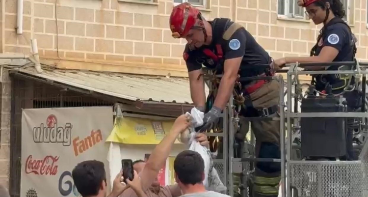 Bursa’nın İznik ilçesine bağlı Orhaniye köyünde, cami kubbesindeki yuvasında mahsur kalan leylek, itfaiye ekiplerinin üçüncü denemesinde kurtarılabildi.