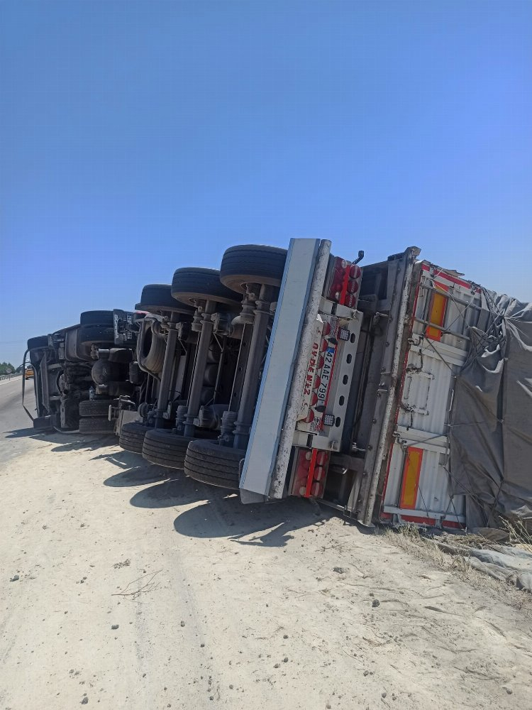 Çanakkale-Bursa karayolunda kamyona çarpan tır yan yattı. Kazada 1 kişi yaralandı.